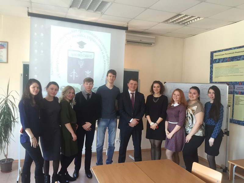 9 апреля 2019 года на юридическом факультете Сибирского института бизнеса, управления и психологии состоялась встреча студентов с представителями Ассоциации юристов России Красноярского края. Ассоциация является давним партнеров института, а некоторые преподаватели - являются членами ассоциации. Целью проведения встречи была передача опыта, студентам рассказали об особенностях деятельности Ассоциации, правовом статусе и о преимуществах членства, основных направлениях развития, а также о новых методиках по повышению квалификации.
